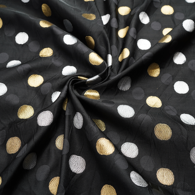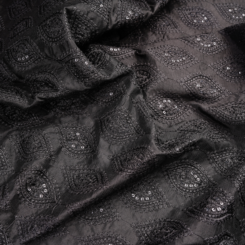Elegant and radiant, Zohraab is a premium Sheesha Silk fabric embellished with fine embroidery, giving it a delicate yet festive character. Its smooth, glossy surface beautifully reflects light, while the detailed threadwork adds a subtle artistic flair. This fabric is designed for statement pieces that balance grace with grandeur.